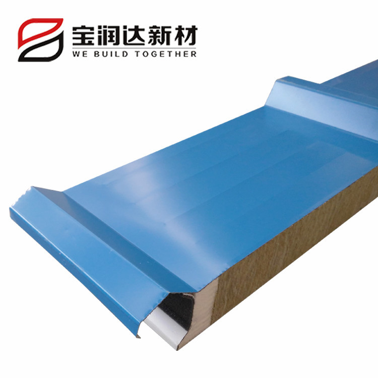 巖棉夾芯板選用憎水巖棉,憎水率大于98%。隱藏式暗釘搭接方式,獨(dú)特的防水槽設(shè)計(jì),有效防止雨水滲透,防止螺釘生銹,延長(zhǎng)屋面板使用年限。 |